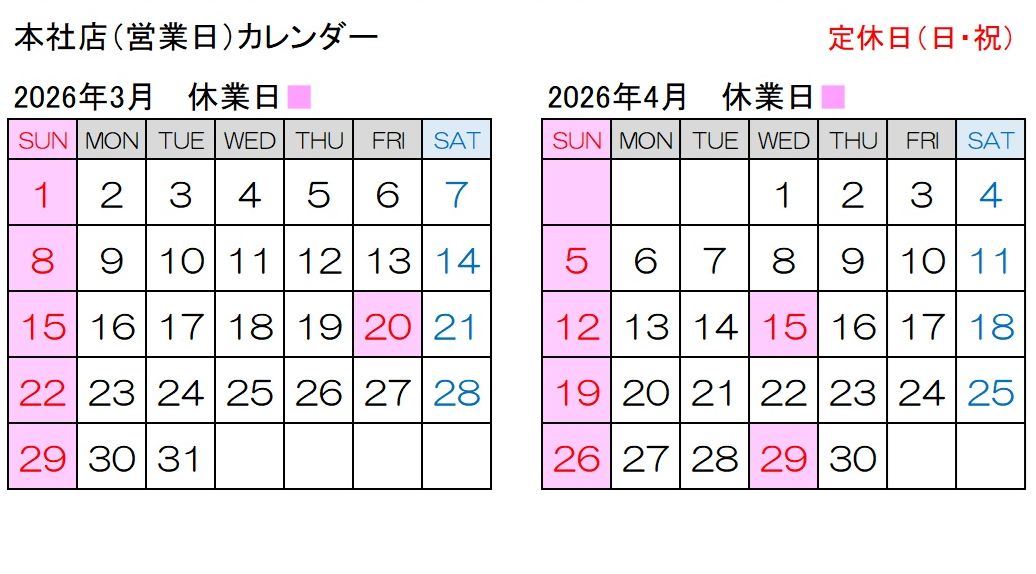 本社店(定休日 日曜・祝日)
