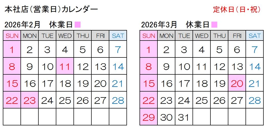 本社店(定休日 日曜・祝日)